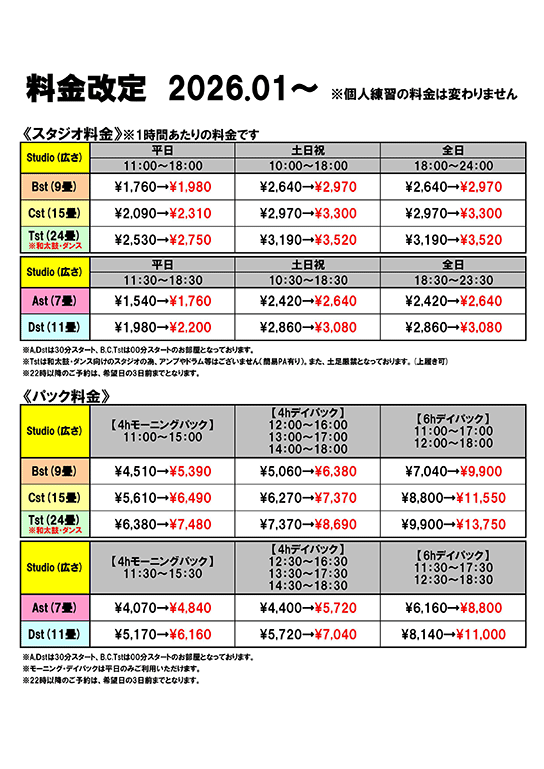 小編成のバンド向き!料金も格安!パックがお得です!